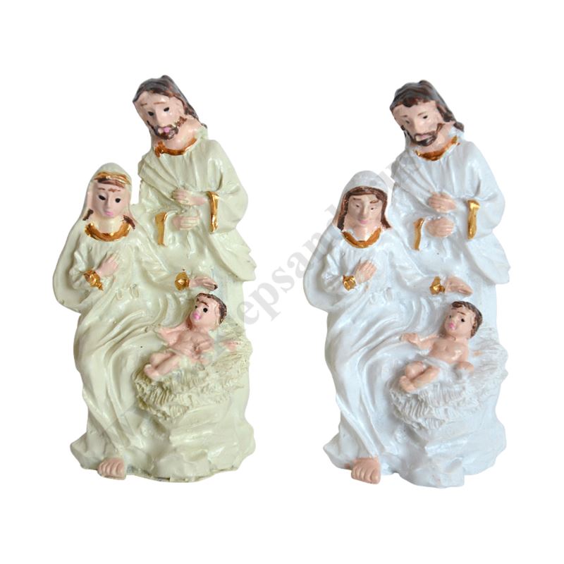 Figurka Świętej Rodziny wykonana z żywicy o wysokości 6 cm i szerokości 3.2 cm, sprzedaż w miksie wzorów.