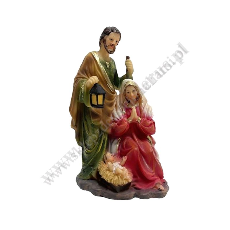 Figurka przedstawiająca Świętą Rodzinę o wysokości 13 cm, wykonana z tworzywa sztucznego.