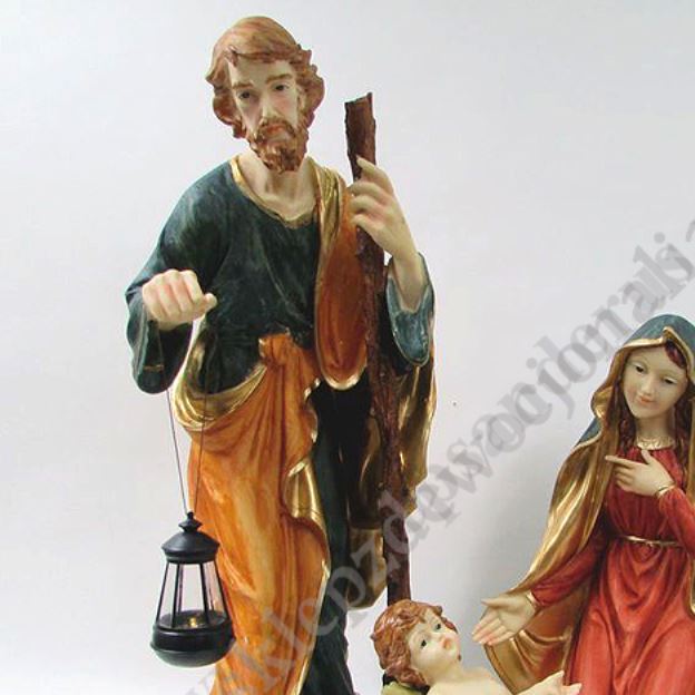 Figury Świętej Rodziny wykonane z tworzywa sztucznego o wysokości najwyższej figury 76 cm.