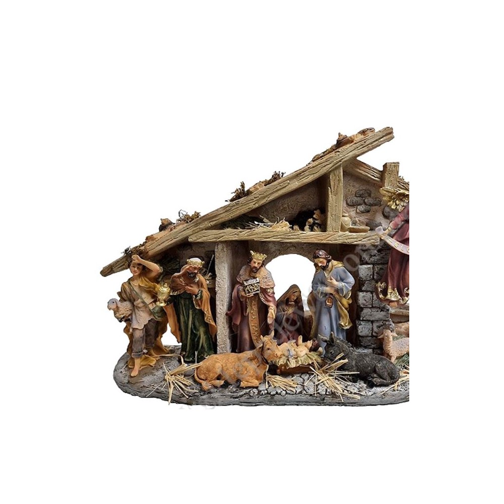 Szopka bożonarodzeniowa o wysokości 39 cm wykonana z tworzywa sztucznego.