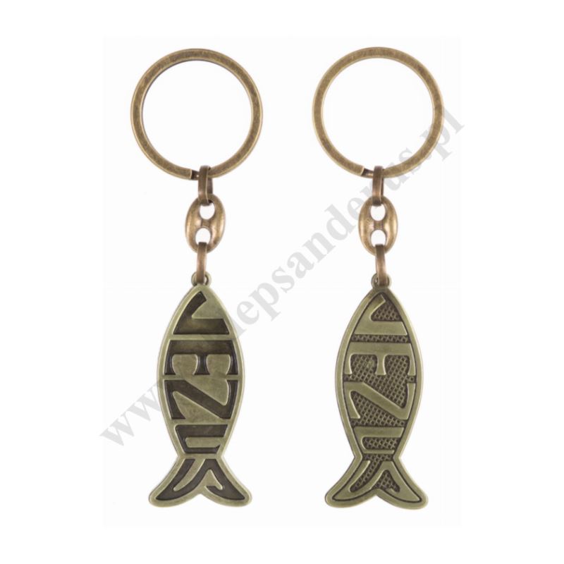 Metalowy brelok ryba - ichtys o wysokości z koluszkiem 10.3 cm i szerokości 2.5 cm.