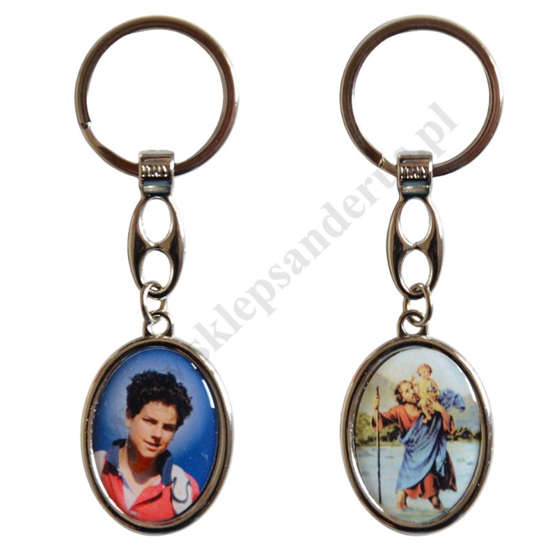 Metalowy brelok Świętego Krzysztofa i Świętego Carlo Acutisa na