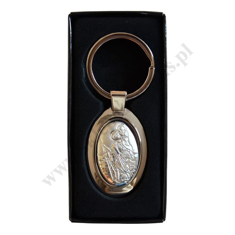 Metalowy brelok ze Św.Krzysztofem. Zapakowany w eleganckie, lakierowane pudełeczko.