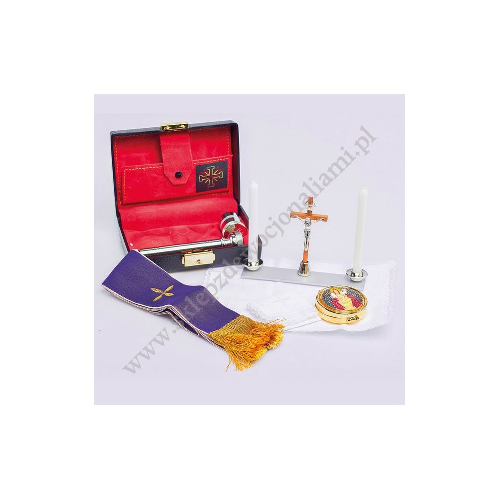 Bursa z wyposażeniem liturgicznym, akcesoria do posługi dla chorych.