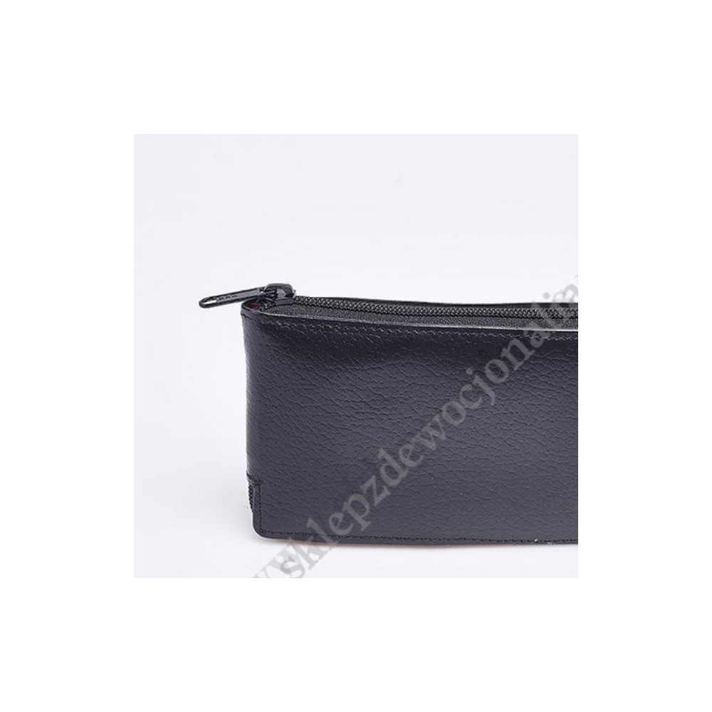 Bursa z wyposażeniem liturgicznym, akcesoria do posługi dla chorych. Miękkie portfelowe etui ze skóry cielęcej, zamykana na suwak błyskawiczny.