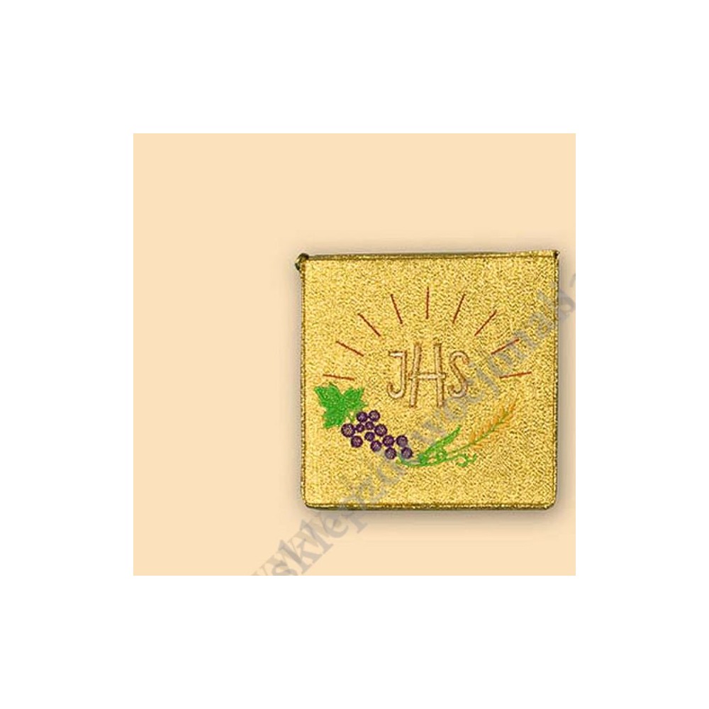 Bursa przeznaczona do wizyty z Komunią świętą u chorych, zdobiona eucharystycznym haftem. Zapinana na rzep.