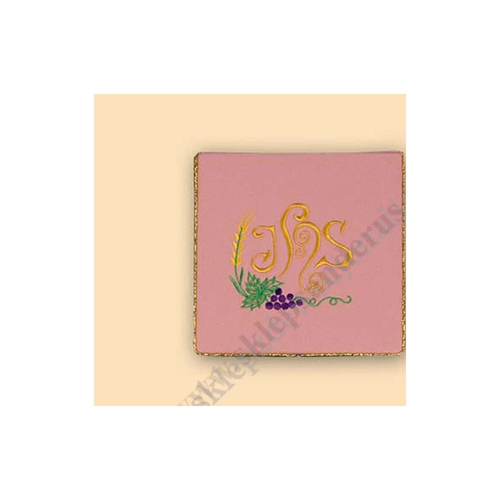 Bursa przeznaczona do wizyty z Komunią świętą u chorych, zdobiona eucharystycznym haftem. Zapinana na rzep.