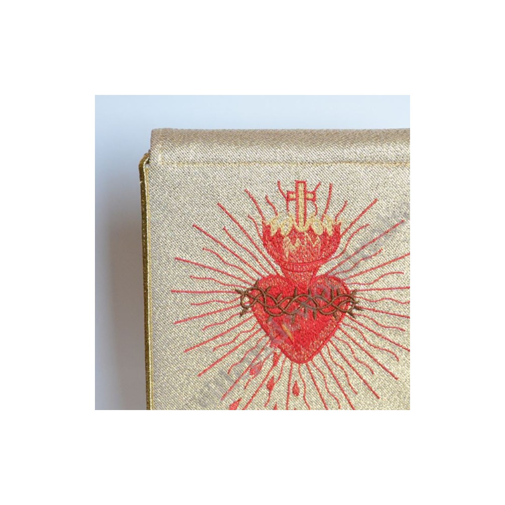 Bursa przeznaczona do wizyty z Komunią świętą u chorych, zdobiona haftem Serca Pana Jezusa. Zapinana na rzep.