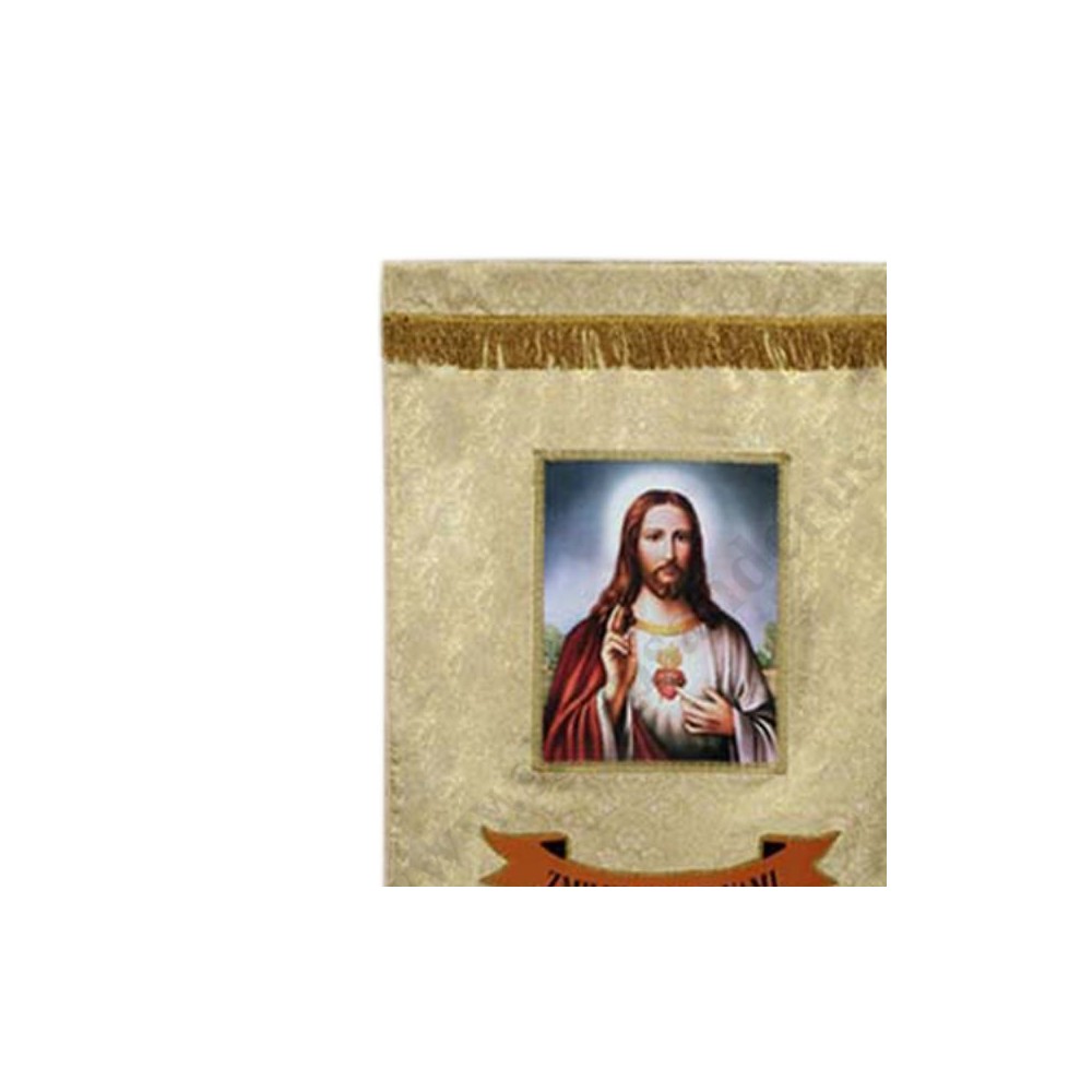 Chorągiew z wizerunkiem Serca Pana Jezusa o wymiarach szerokość 85 cm, wysokość 125 cm.
