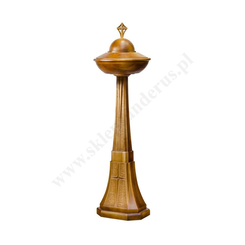 Chrzcielnica wykonana z drewna lipowego o wysokości 130 cm i średnicy górnej 38 cm. Szerokość podstawy 35 cm , głębokość podstawy 27 cm.