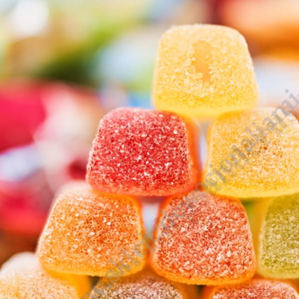 Składniki: cukier, syrop glukozowy, woda, substancja żelująca: pektyny;