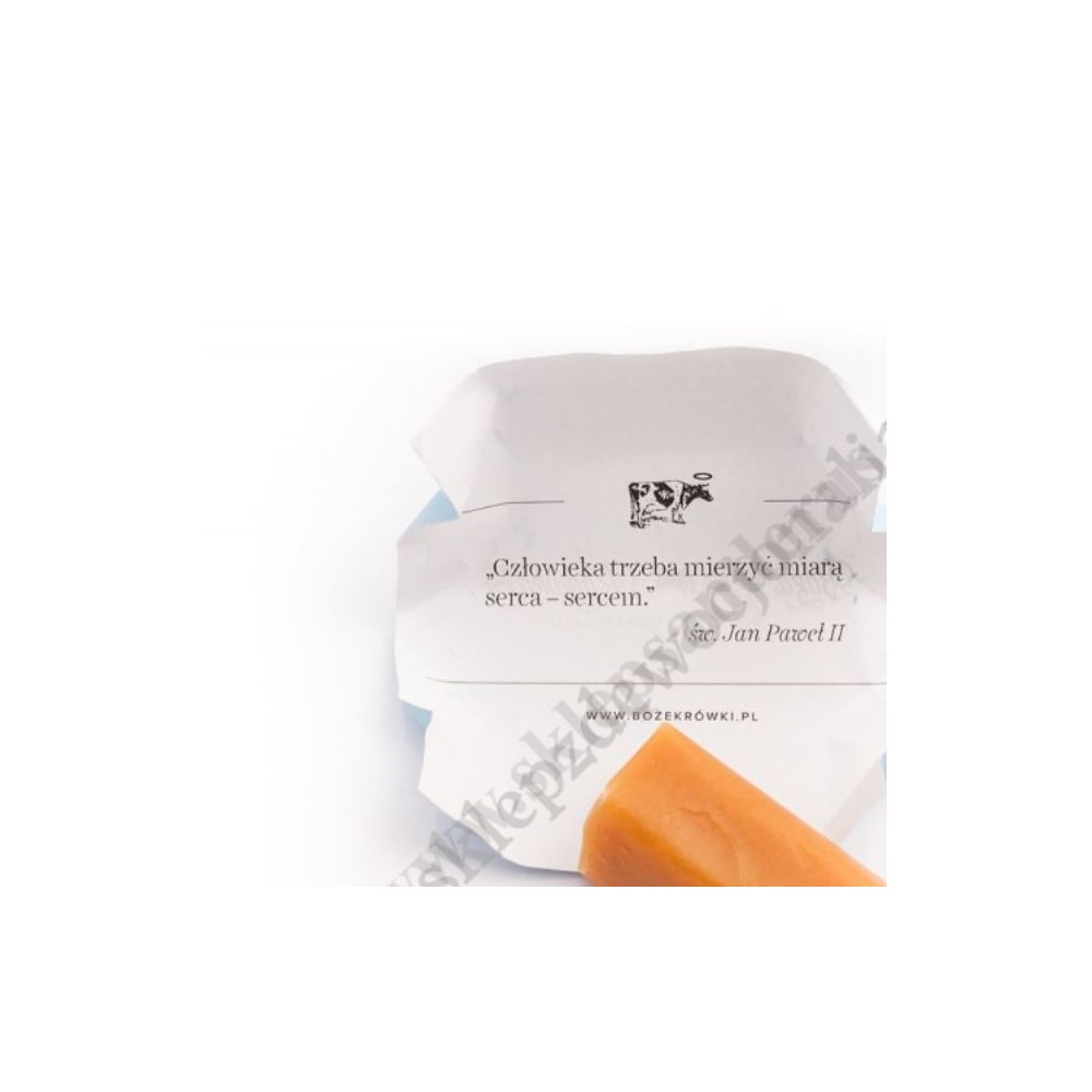 Krówki z cytatami ze świętych zapakowane w karton o wadze 3.5 KG, w kartonie znajduje się ok.220 cukierków.