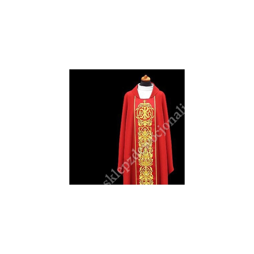 Ornat bogato haftowany złotymi nićmi, uszyty z wysokiej jakości lekkiej tkaniny
