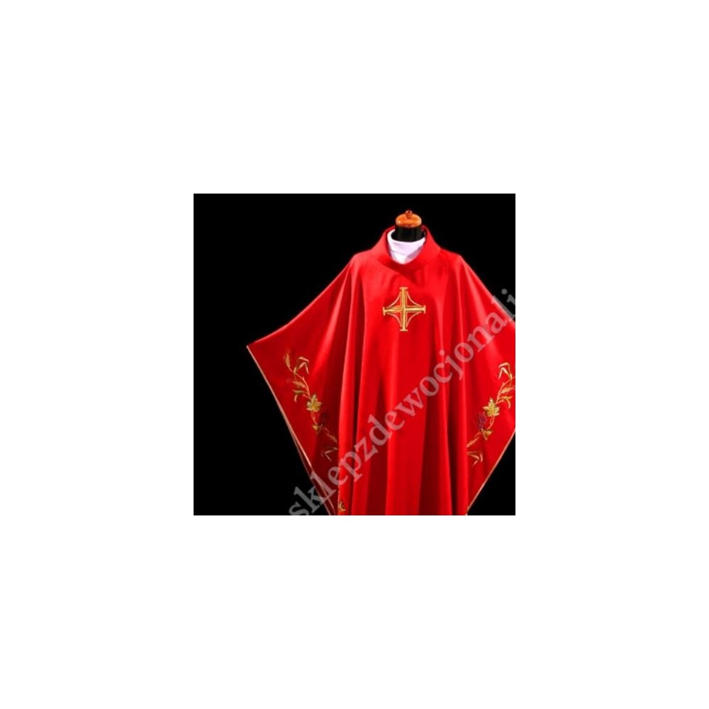 Ornat monastyczny z haftowanym złotym krzyżem i bocznymi barwnymi haftami. Szata liturgiczna uszyta z tkaniny przetykanej srebrną nicią, ze stułą wewnętrzną