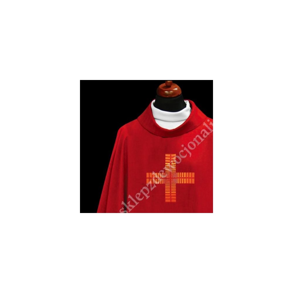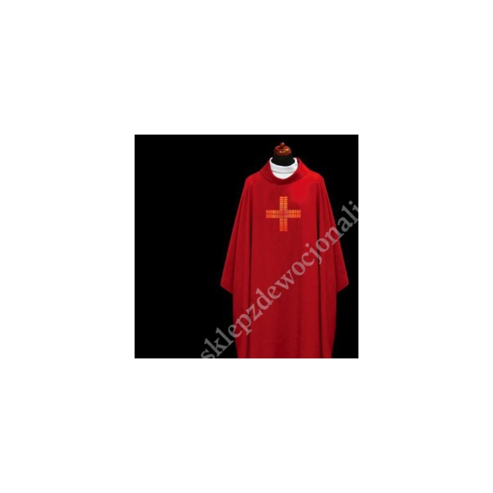 Elegancki ornat uszyty w stylu monastycznym, ze stułą wewnętrzną.Ornat ozdobiony nowoczesnym haftem krzyża, haft wykonany cieniowaną , satynowa nicią.