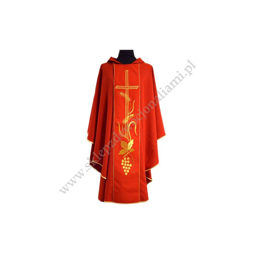 Ornat z pasami haftowanymi komputerowo. Wykonany z lekkiego i przyjemnego w dotyku materiału. W komplecie stuła wewnętrzna.