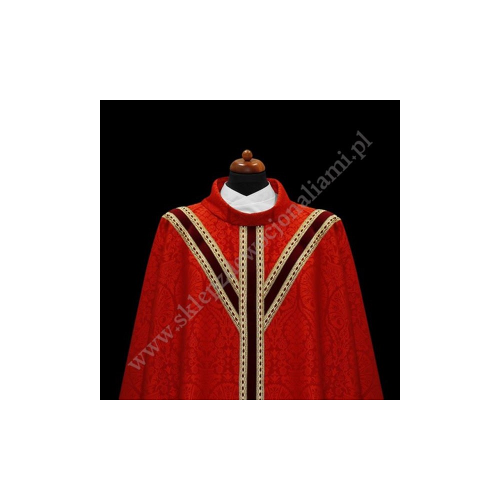 Ornat semigotycki uszyty z wysokiej jakości tkaniny typu adamaszek.