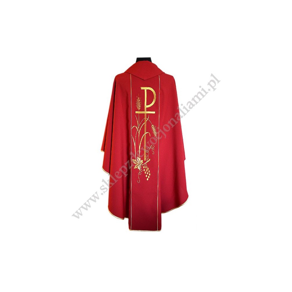 Ornat z pasami haftowanymi komputerowo. Wykonany z lekkiego i przyjemnego w dotyku materiału. W komplecie stuła wewnętrzna.