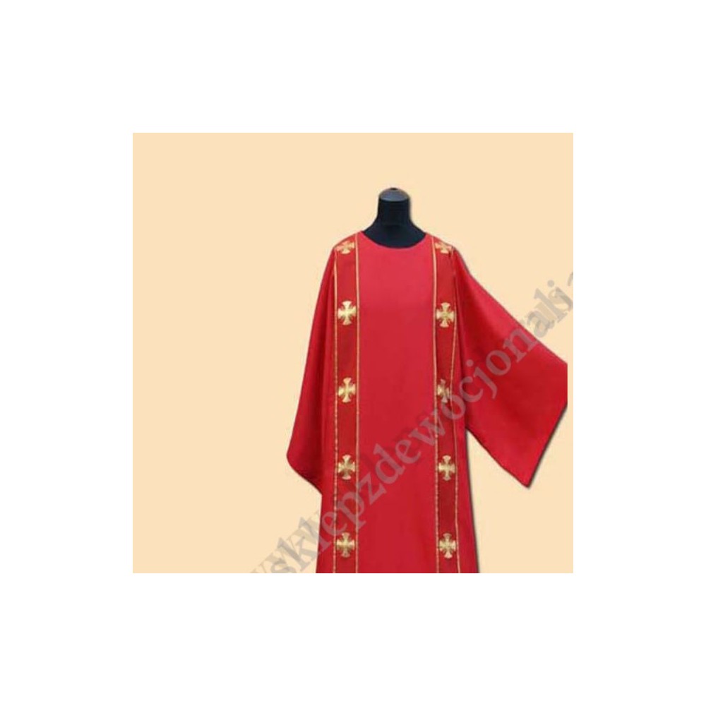 Czerwona dalmatyka diakońska zdobiona dwoma czerwonymii pasami z ornamentami krzyża