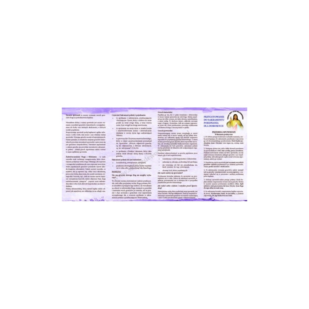 Składany na 4 części, dwustronny druk wysokiej jakości. Folder zawiera przebieg Spowiedzi Świętej.