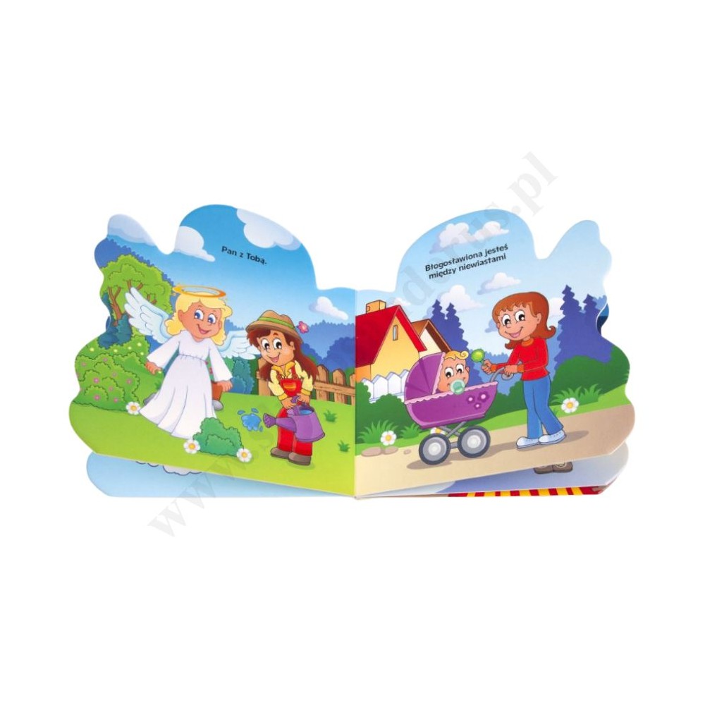 modlitwy “Zdrowaś Mario” zilustrowany za pomocą kolorowych, wesołych obrazków.