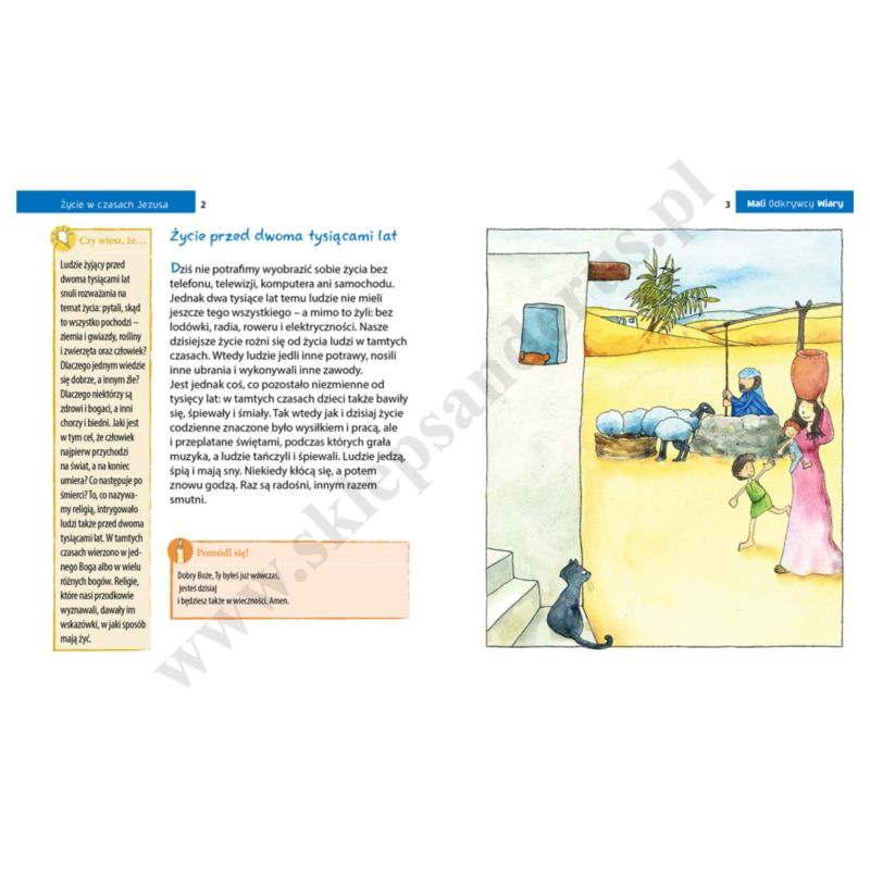W tym tomiku dowiemy się wszystkiego, co istotne i ciekawe o życiu w czasach Jezusa. Mali chrześcijanie przeczytają m.in. o geografii Judei i wpływach Rzymu na ten obszar kulturowy. Będą się mieli okazję przekonać, jak wyglądały domy Izraelitów, co jedli i w co się ubierali, gdzie spotykali się na modlitwie, jak spędzali wolny czas, jakie mieli zwyczaje i jakie wykonywali zawody.