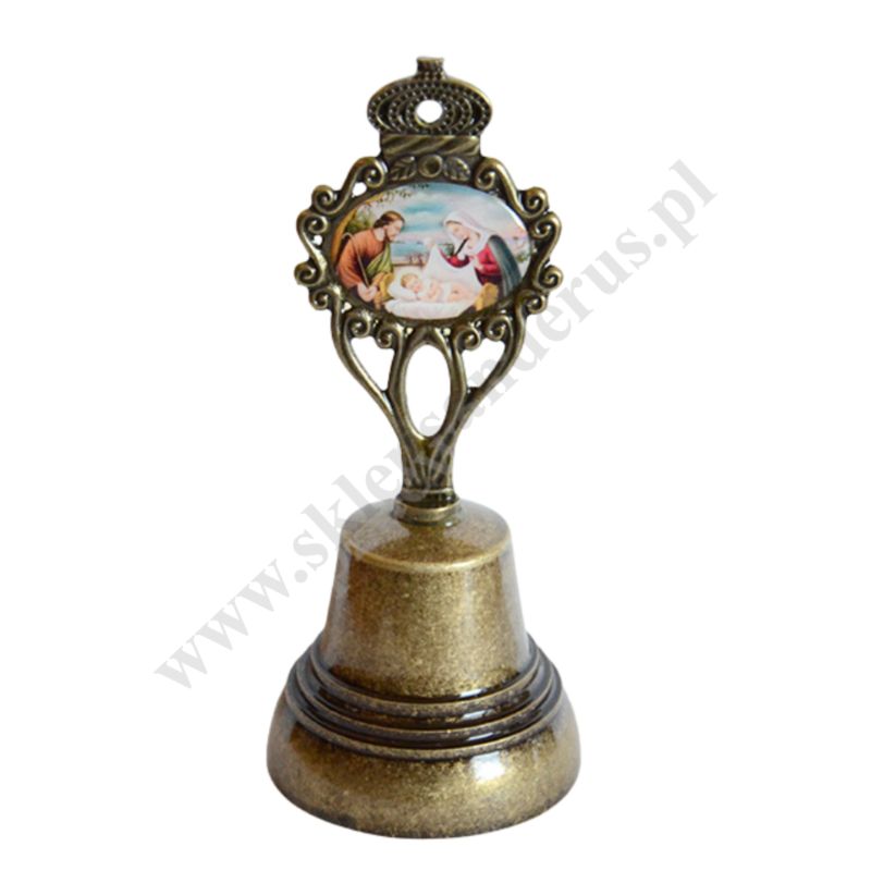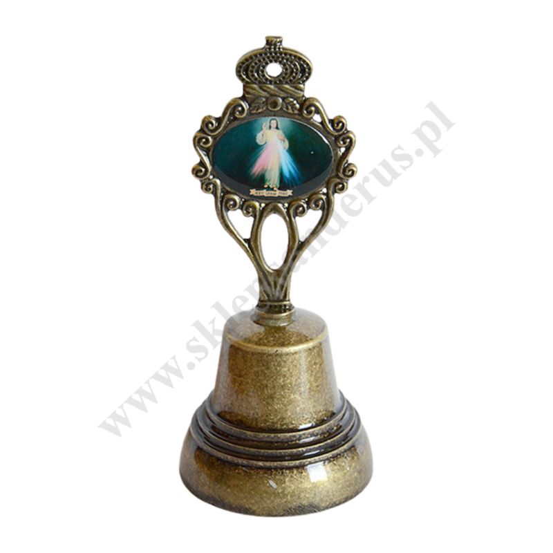 Dzwonek metalowy o wysokości 15.5 cm, średnica dzwonka 6.5 cm.