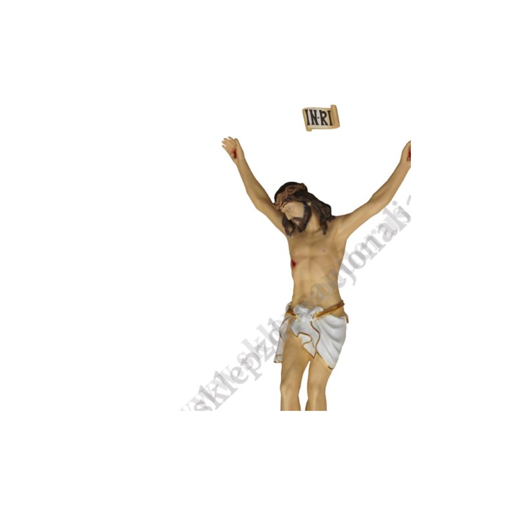 Korpus Chrystusa na krzyż - figura żywiczna w wersji wielobarwnej o przekątnej 103 cm, rozstaw rąk 50 cm.