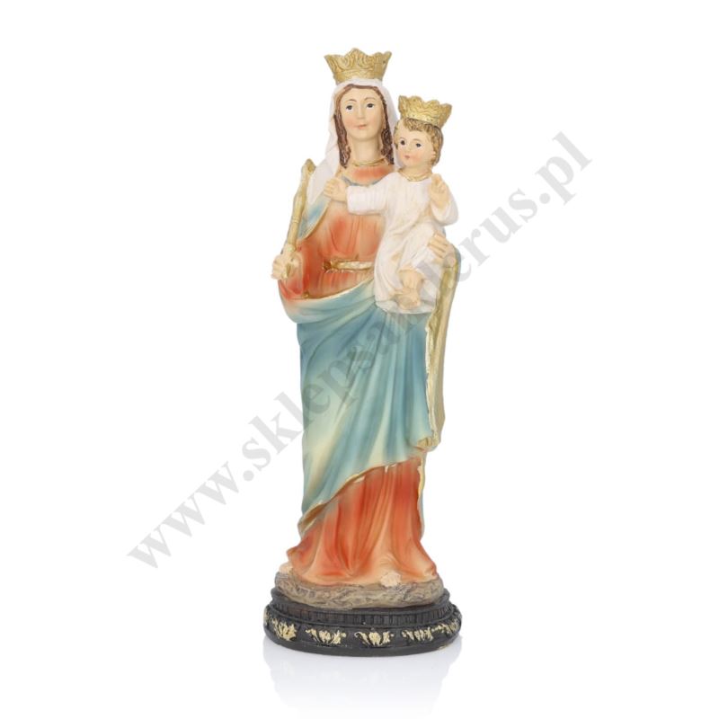 Figurka Matki Bożej Wspomożycielki wykonana z żywicy o wysokości 20 cm.