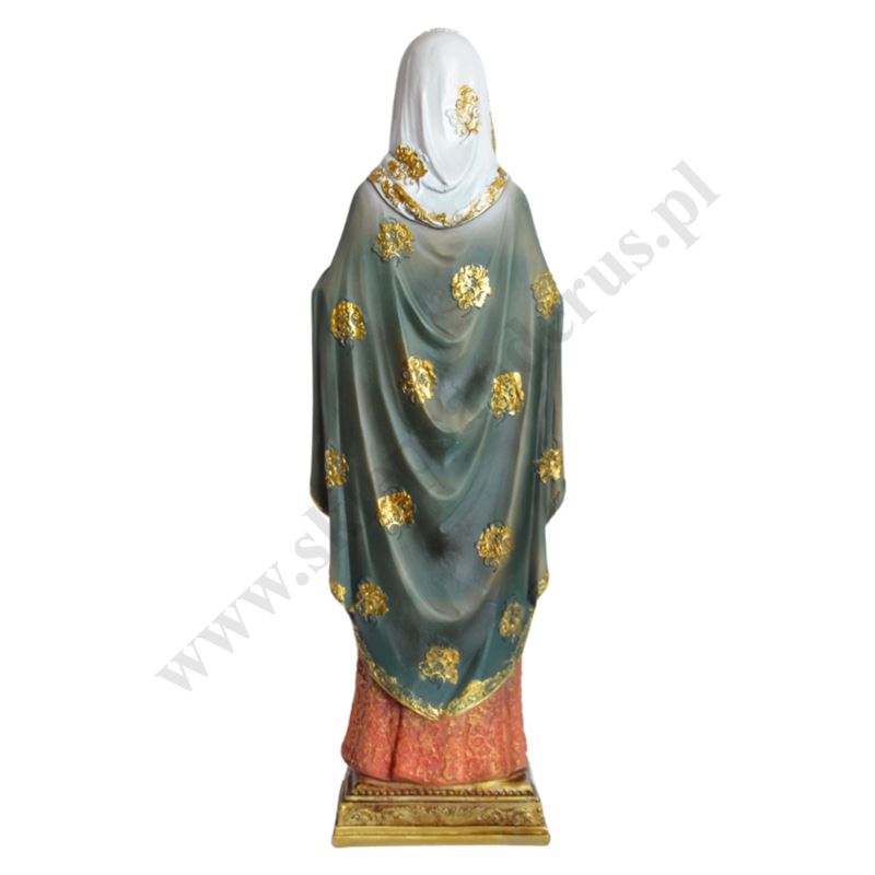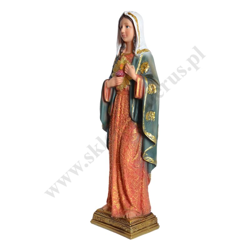 Figurka Serce Matki Bożej o wysokości 33 cm i szerokości 11 cm, wykonana z żywicy.