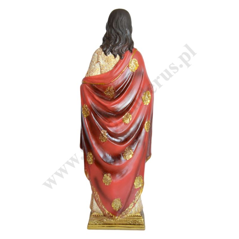Figurka Serce Pana Jezusa wykonana z żywicy o wysokości 33.5 cm i szerokości 11 cm.