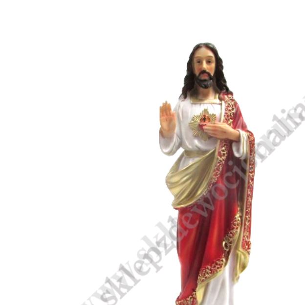 Figurka przedstawiająca Serce Pana Jezusa o wysokości 43 cm, wykonana z tworzywa sztucznego.