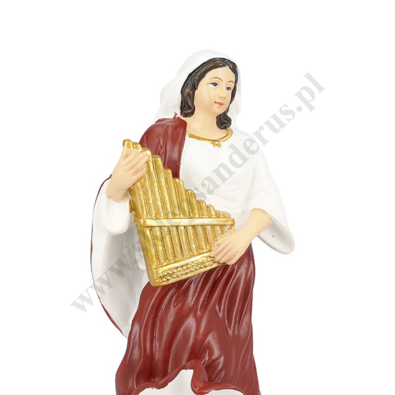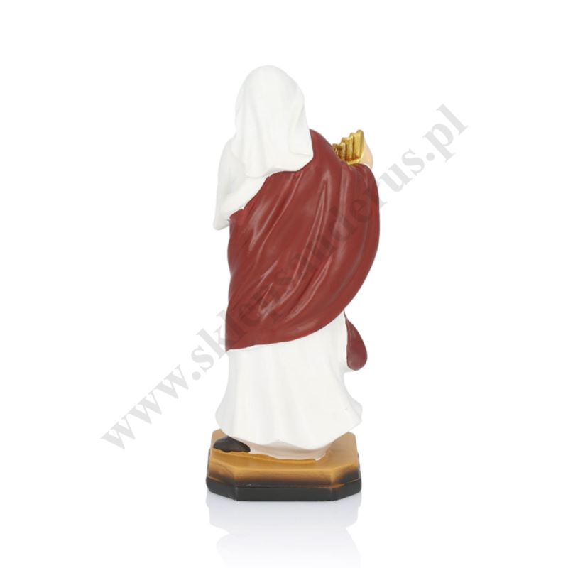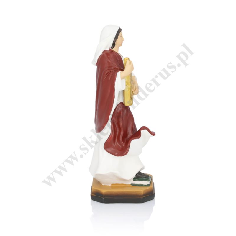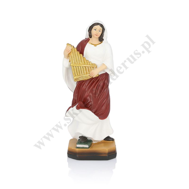 Figurka Świętej Cecylii o wysokości 15 cm wykonana z żywicy.