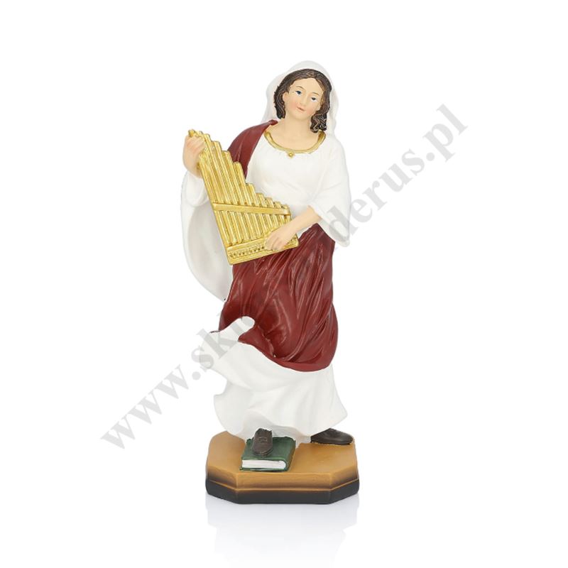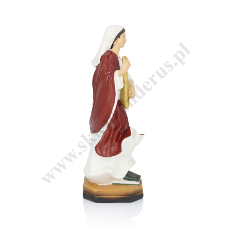 Figurka Świętej Cecylii o wysokości 21 cm wykonana z żywicy.