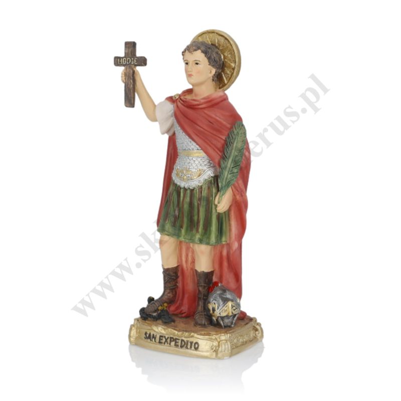 Figurka Świętego Ekspedyta o wysokości 13 cm wykonana z żywicy.