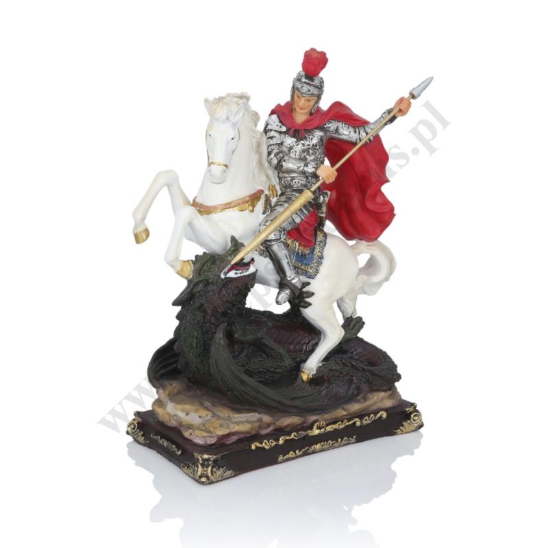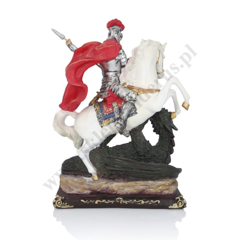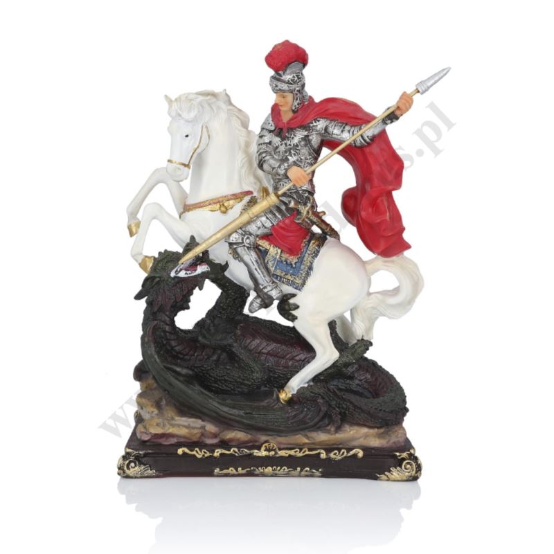 Figurka Świętego Jerzego wykonana z żywicy o wysokości 30 cm.