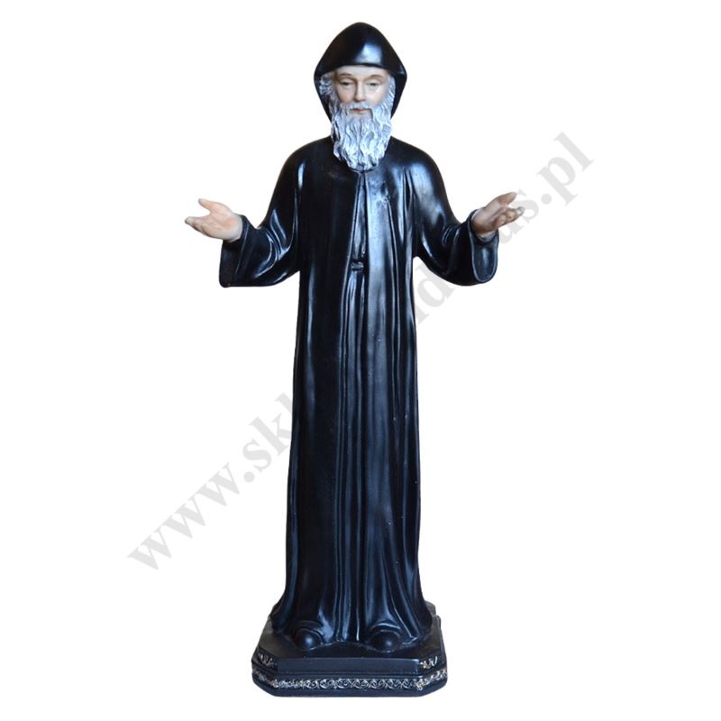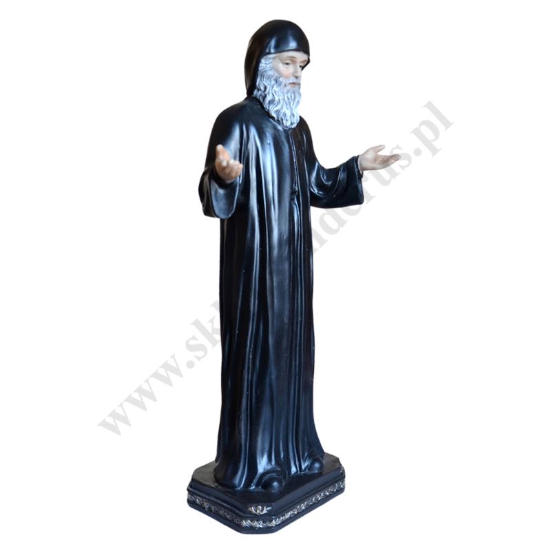 Figurka Świętego Charbela o wysokości 39 cm, szerokości 17.5 cm i głębokości 11 cm wykonana z żywicy.