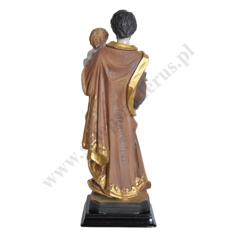 Figurka Świętego Józefa wykonana z żywicy o wysokości 20.7 cm, szerokości 7.5 cm i głębokości 6.5 cm.