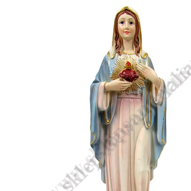 Figurka Serce Matki Bożej wykonana z tworzywa sztucznego o wysokości 27 cm.