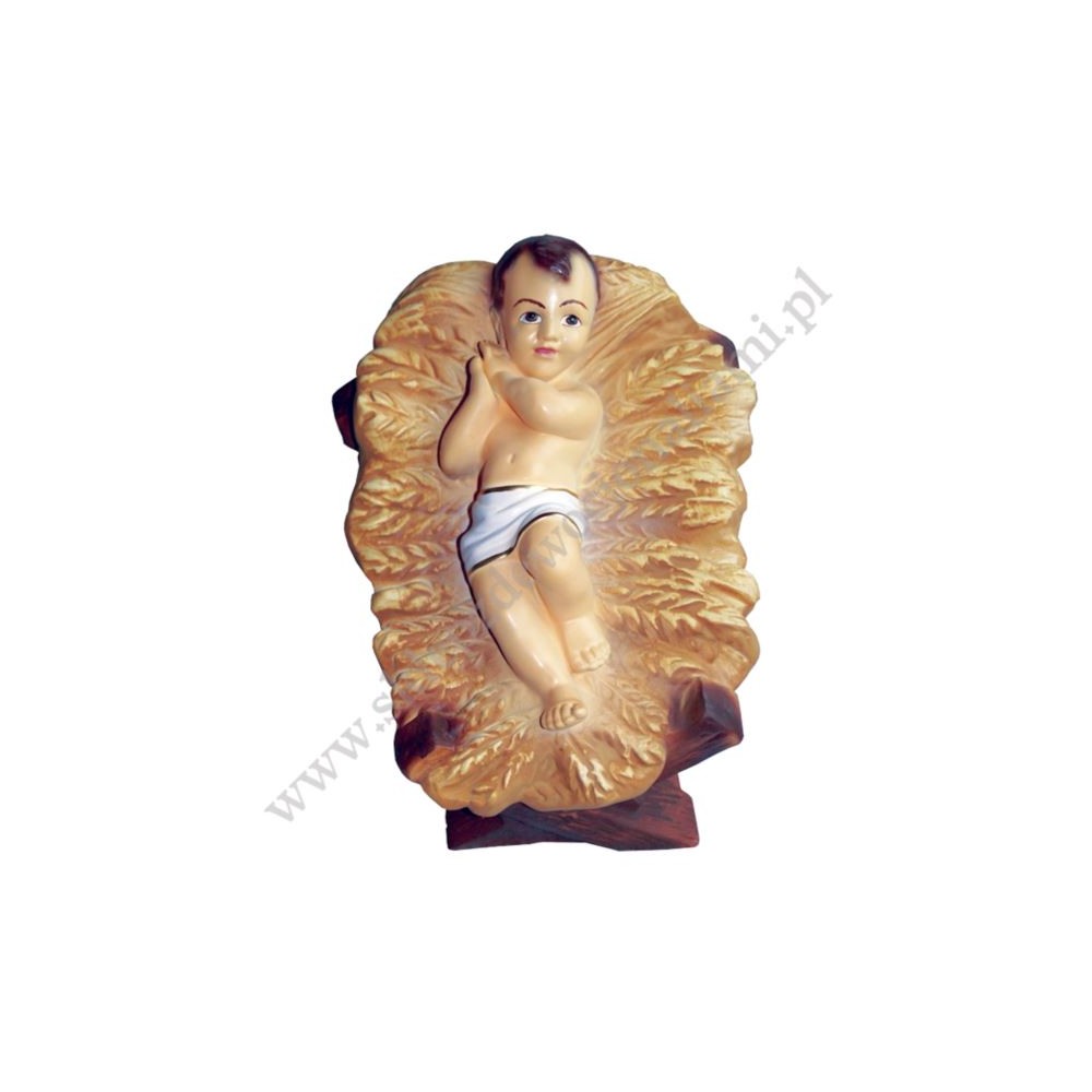 Figura żywiczna Dzieciątka na sianku do szopki o wymiarach 32 x 23 x 25 cm
