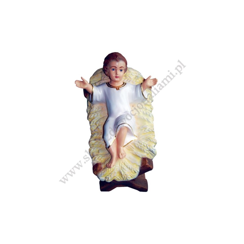 Figura żywiczna Dzieciątka na sianku do szopki o wymiarach 40 x 27 x 33 cm.