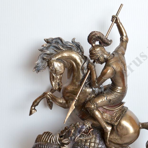 Figurka Świętego Jerzego o wysokości 31 cm i szerokości 24.5 cm.