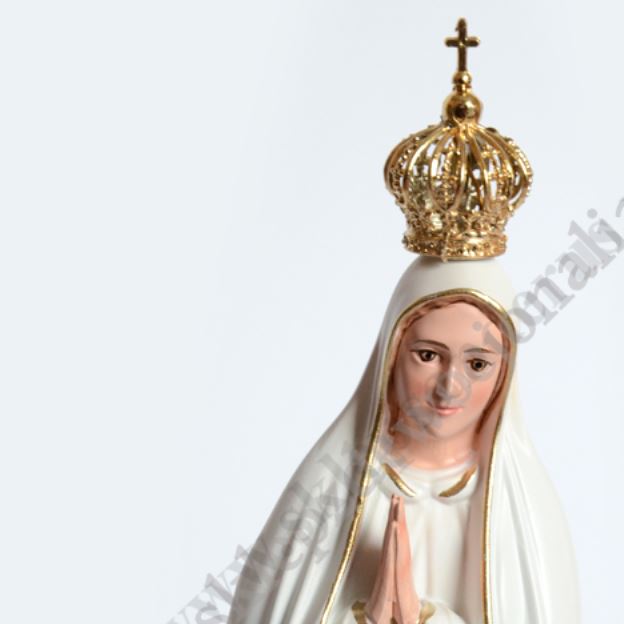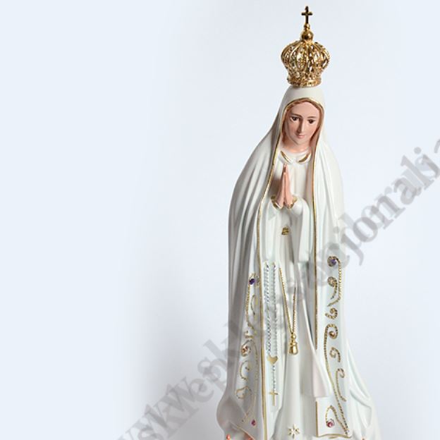 Figura Matki Bożej Fatimskiej sprowadzanej z Portugalii, wykonana z żywicy syntetycznej, charakteryzuje się pięknym wykonaniem oraz malowaniem.
