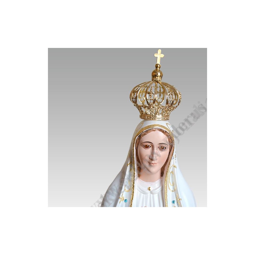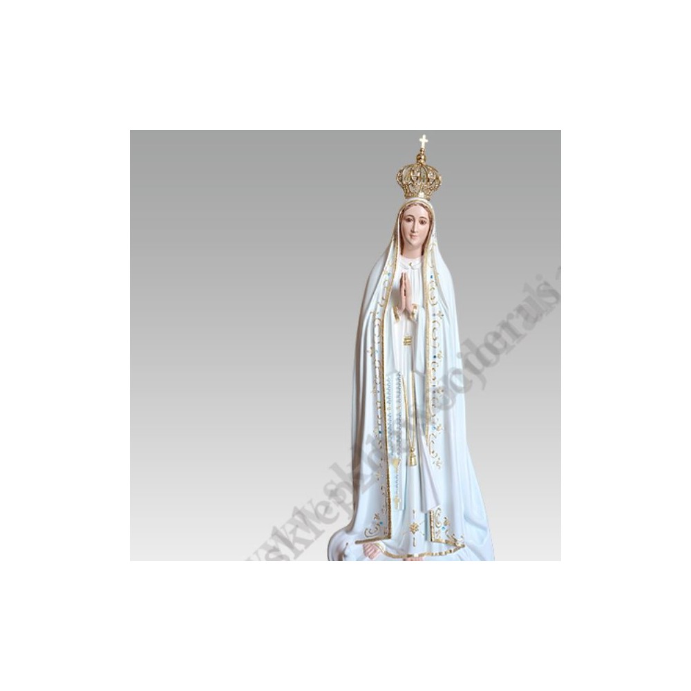 Figura Matki Bożej Fatimskiej sprowadzanej z Portugalii, wykonana z żywicy syntetycznej, charakteryzuje się pięknym wykonaniem oraz malowaniem, oczy wykonane są ze szkła przez co wyglądają jak żywe.