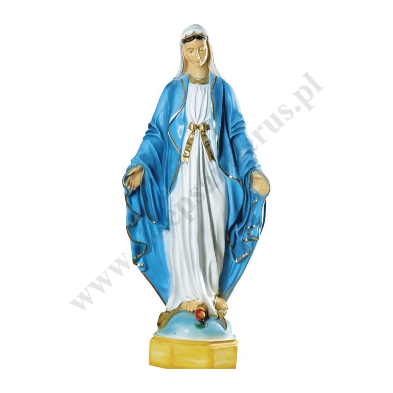 Figura Matki Bożej Niepokalanej wykonana z żywicy epoksydowej o wysokości 116 cm.