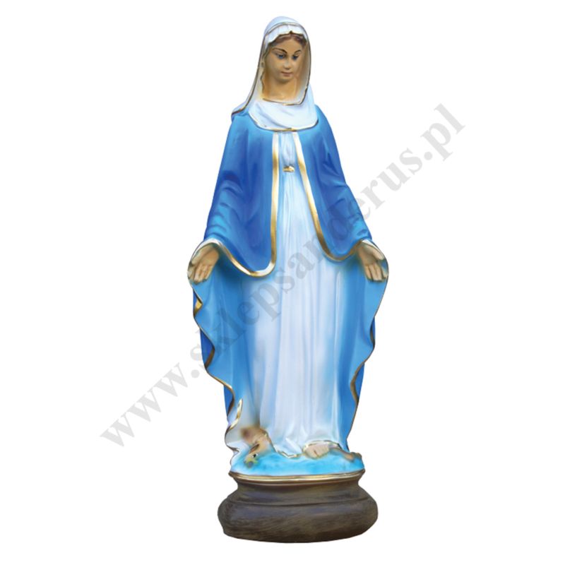 Figura Matki Bożej Niepokalanej wykonana z żywicy epoksydowej o wysokości 43 cm.