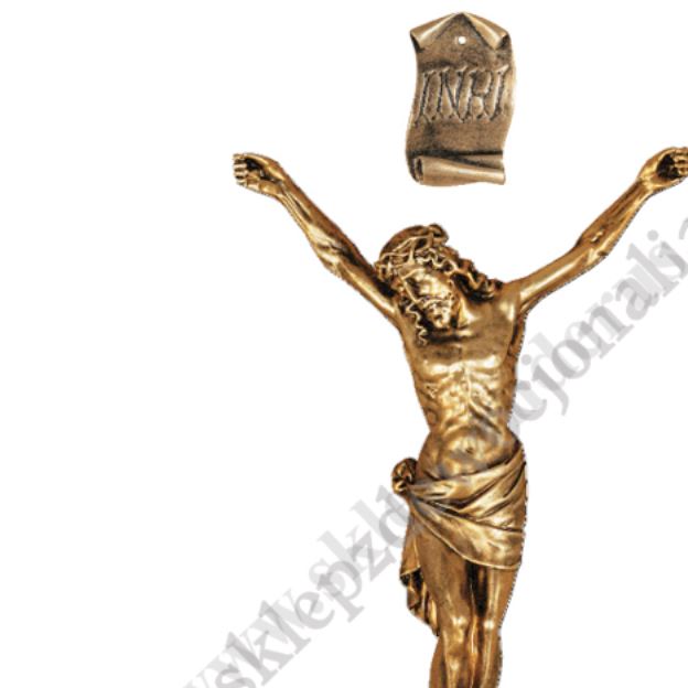 Korpus Chrystusa na krzyż - figura żywiczna w kolorze ecru o przekątnej 65 cm, rozstaw rąk 35 cm. Na zdjęciu jest zaprezentowane zdjęcie figury w wersji patyny złotej, natomiast w rogu zdjęcia prezentujemy inną figurę w kolorze ecru aby poglądowo przedstawić jak będzie wyglądał korpus w tym wariancie kolorystycznym.