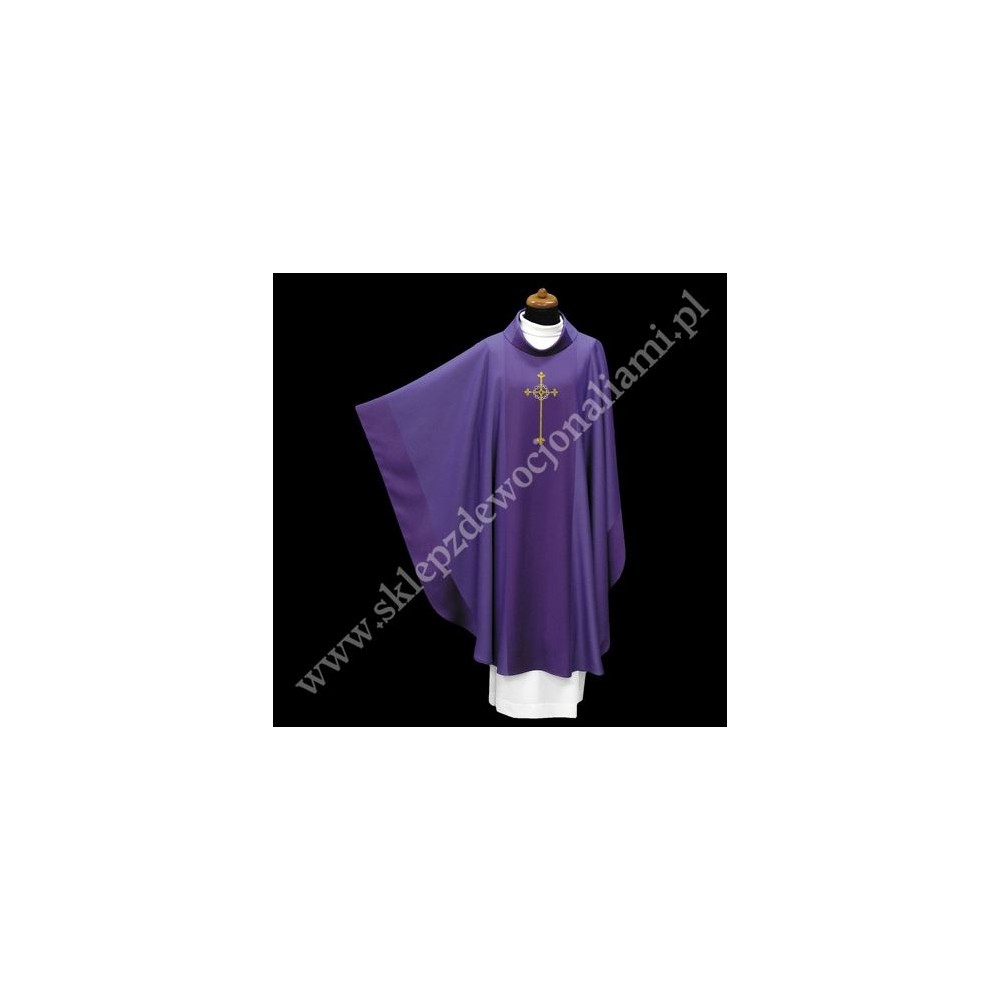 Ornat haftowany na z cieniowanej tkaninie wełnianej, zdobiony haftowanym motywem krzyża w koronie cierniowej