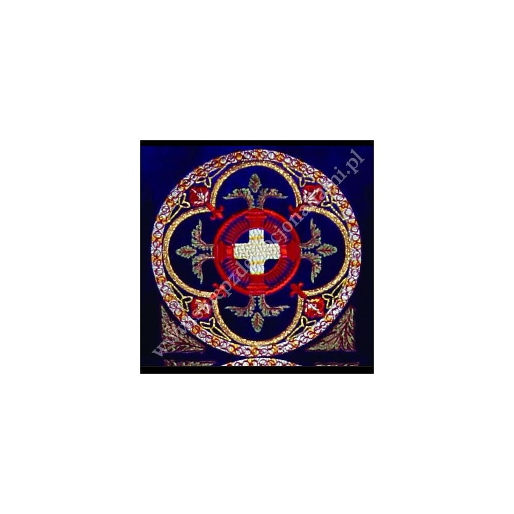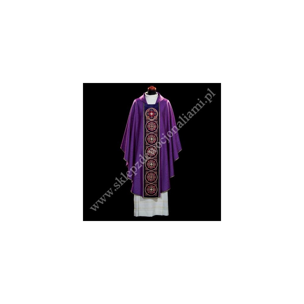 Ornat bardzo bogato haftowany barwnymi nićmi na aksamitnym pasie.