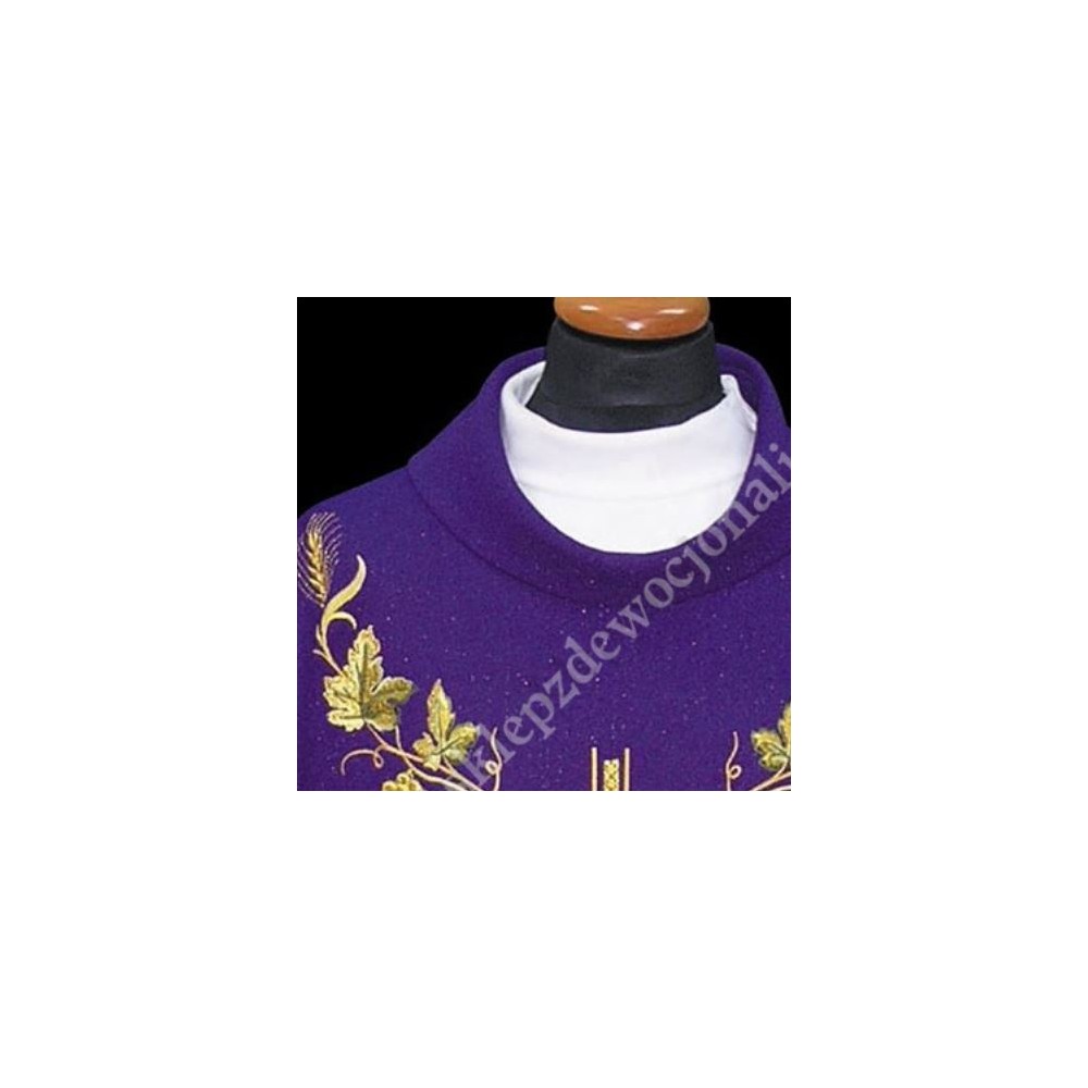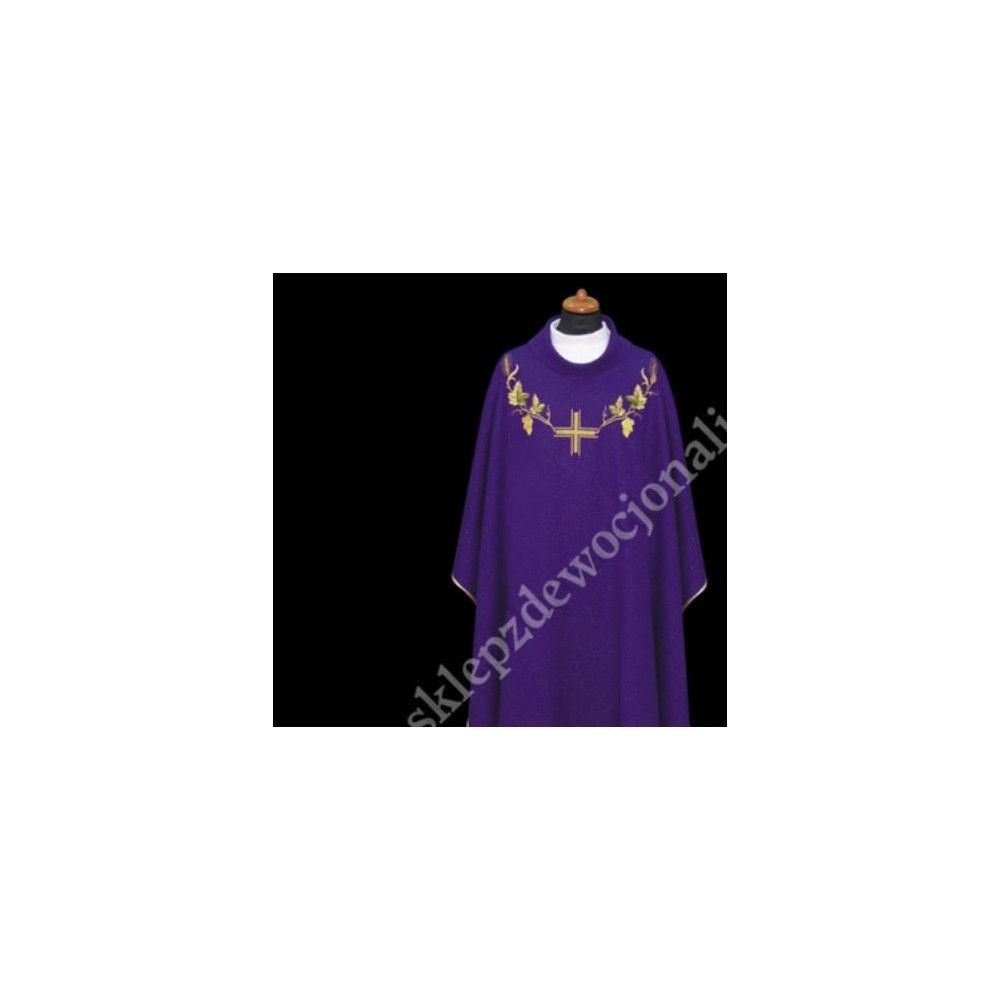 Ornat uszyty z ozdobnej tkaniny przetykanej srebrną nicią w stylu monastycznym ze stułą wewnętrzną